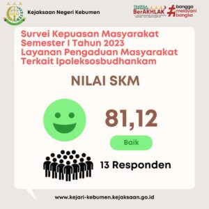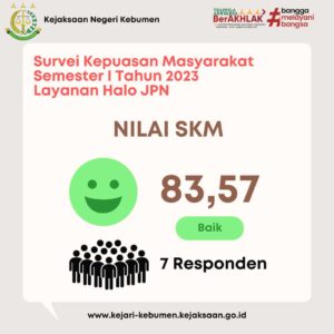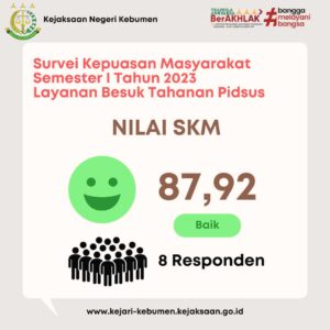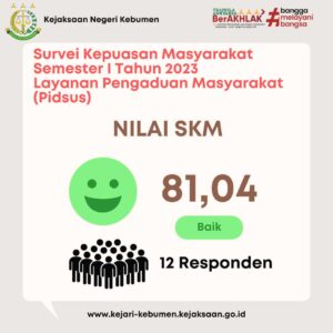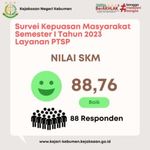 Nilai Survei Kepuasan Masyarakat Terhadap Pelayanan di Kejari Kebumen Semester I Tahun 2023