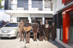 Kejari Kebumen – Senin 2 Oktober 2023, Kejaksaan Negeri Kebumen melaksanakan Upacara Hari Kesaktian Pancasila Tahun 2023 bertempat di halaman kantor Kejaksaan Negeri Kebumen. Bertindak sebagai inspektur upacara adalah Haedar, S.H., M.H. (Kajari Kebumen), komandan upacara Aksori. Upacara diikuti oleh para Kasi dan Kasubag, Jaksa Fungsional, Kaur, dan pegawai Kejaksaan Negeri Kebumen.