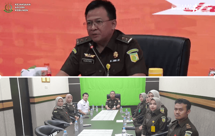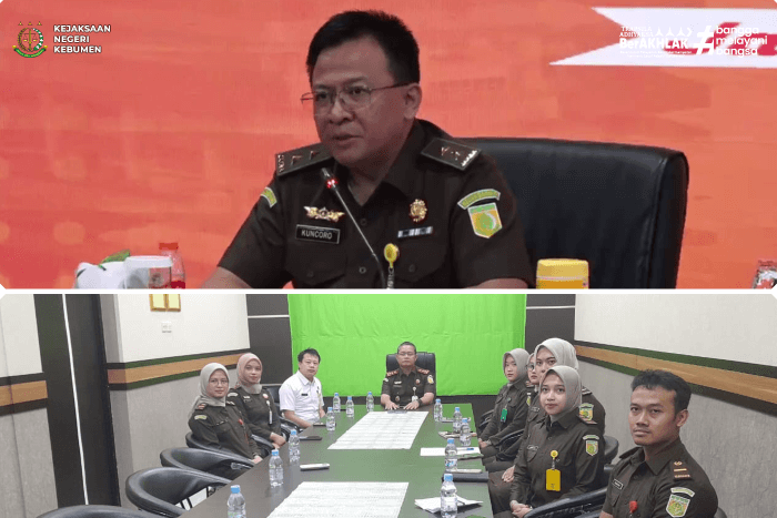 Kejari Kebumen – Hari Rabu tanggal 27 Agustus 2025, Kepala Kejaksaan Negeri Kebumen Endi Sulistiyo, S.H.,M.H., Kepala Seksi Perdata dan TUN Kejari Kebumen Pery Kurnia, SH. M.H., Jaksa Fungsional pada Kejaksaan Negeri Kebumen Emi Nugraheni S, SH., MH. dan Calon Jaksa pada Kejaksaan Negeri Kebumen mengikuti Webinar Percepatan Penyusunan Rancangan Peraturan Pemerintah Tentang Manajemen Kepegawaian Jaksa secara daring bertempat di Comand Center Kejari Kebumen.